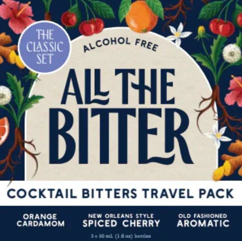 This Classic Bitters Travel Pack includes three 1oz bottles of small-batch, 0% ABV cocktail bitters—perfect for making better drinks at home, on a plane, at the office, or anywhere you want a bitters & soda. They’re TSA-friendly, giftable, and perfect for drinks with or without alcohol.