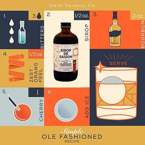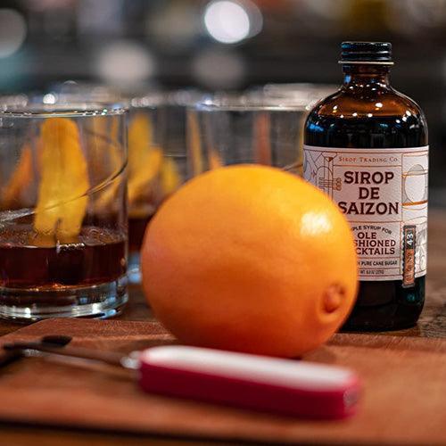 Sirop de Saizon is a complex Old Fashioned cocktail syrup made in small batches with toasted molasses and vanilla bean to perfectly complement the flavors of quality bourbon.