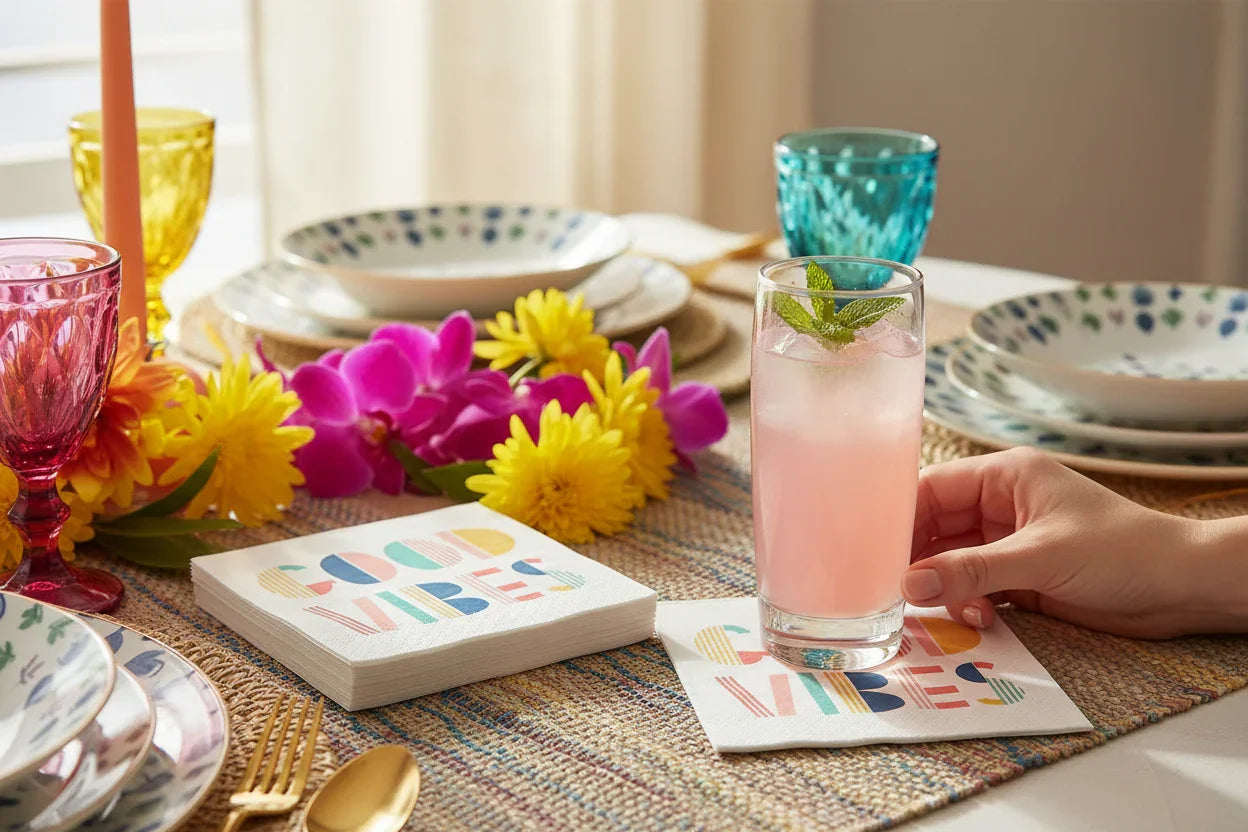 Bring the good vibes to your next party or friends gathering with these fun cocktail napkins. Combine them with