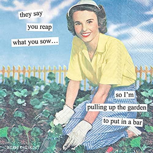 "They say you reap what you sow...so I'm pulling up the garden to put in a bar." Bring out these fun cocktail napkins at your next friends' gathering to complement the drinks and company.